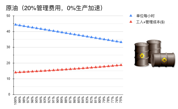 下圖顯示了豐度和數量的下降,而工資(單位員工成本+單位管理成本)增加(1級油井)。