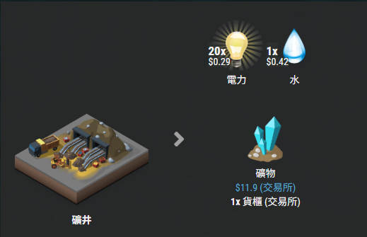 礦物需要(20 x 電力)和(1 x 水)來生產。