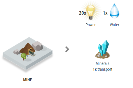 Minerais requerem (20 x Energia) e (1 x Água) para serem produzidos.